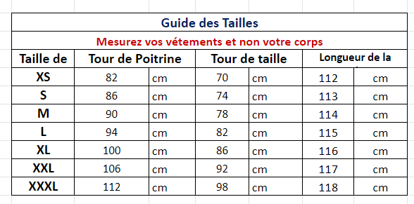 Consultez le guide des tailles en photo pour choisir la bonne taille