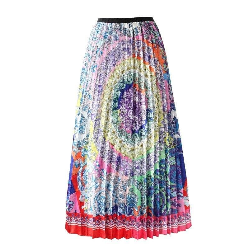 Cette Jupe Longue Vintage Plissée Woodstock fun est une référence. Osez un look rétro en référence au festival de la plus belle époque. Associez la jupe avec un T shirt bien taillé et vous avez votre style pour profiter de l’été. Une pièce à shopper au plus vite.
