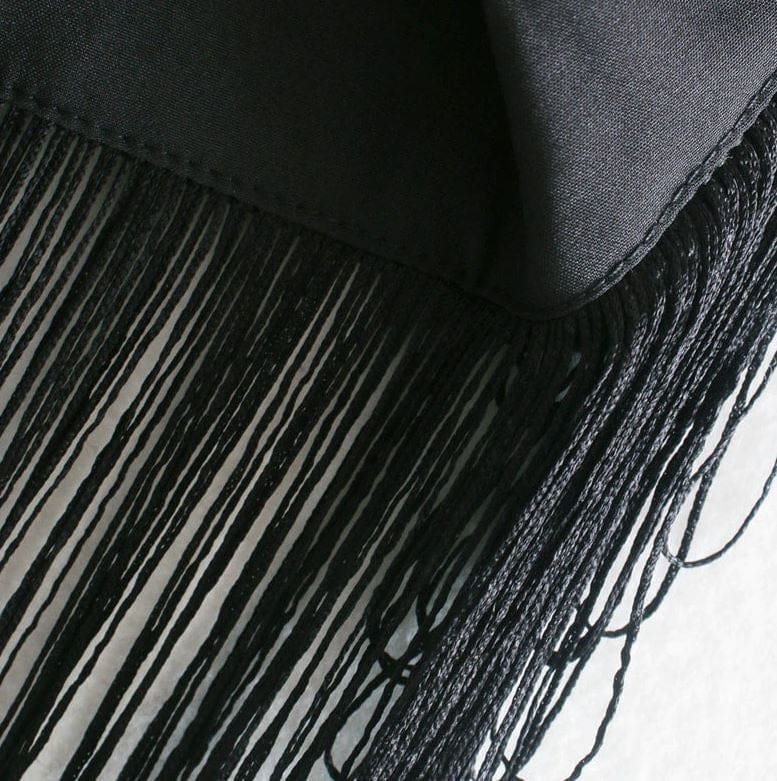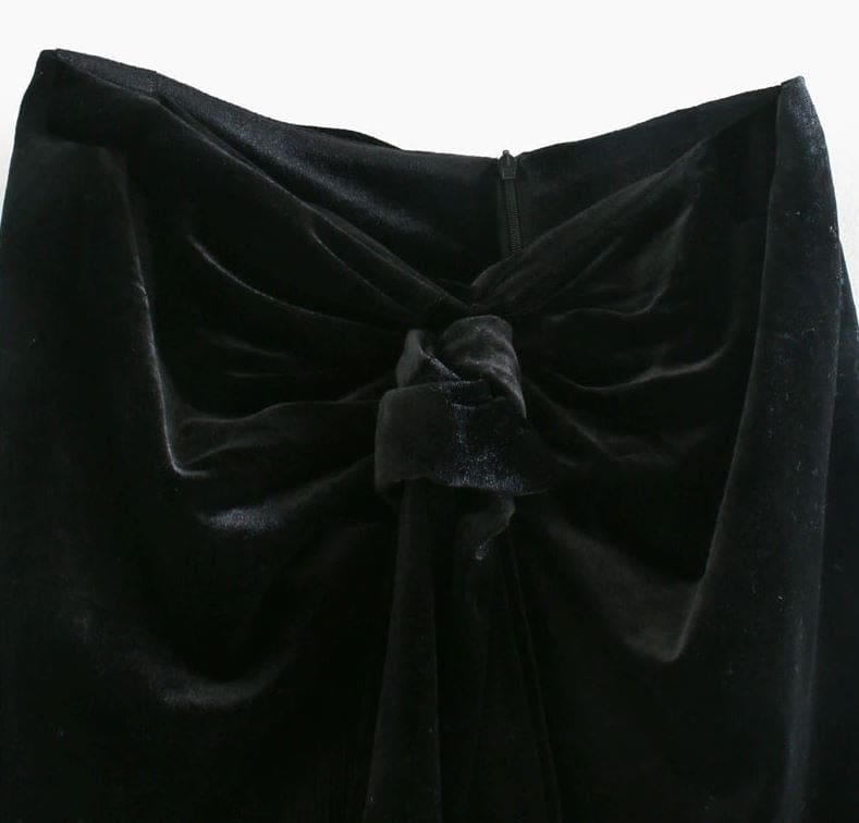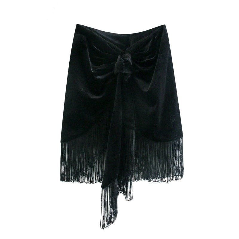 Craquez pour cette Jupe en Velours Vintage Noire. Ce vêtement très féminin vous apportera une touche d’originalité avec son gros noeud, ses franges et sa taille haute.