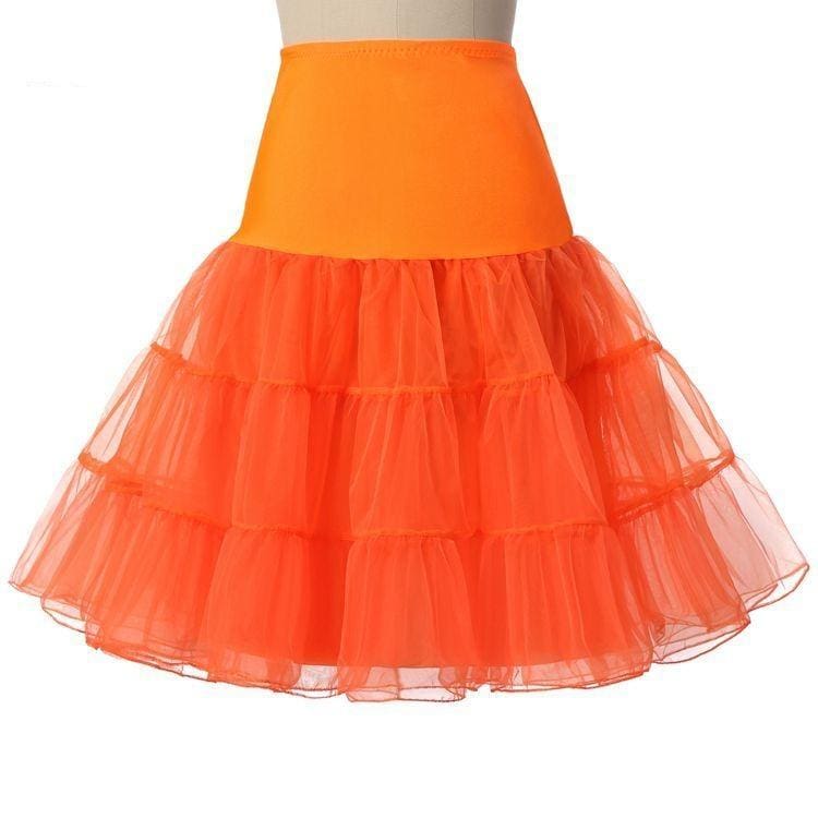 Un jupon pour robe rétro orange pour sublimer votre tenue. Ce jupon ajoutera du volume et du style à votre look vintage. Indispensable !