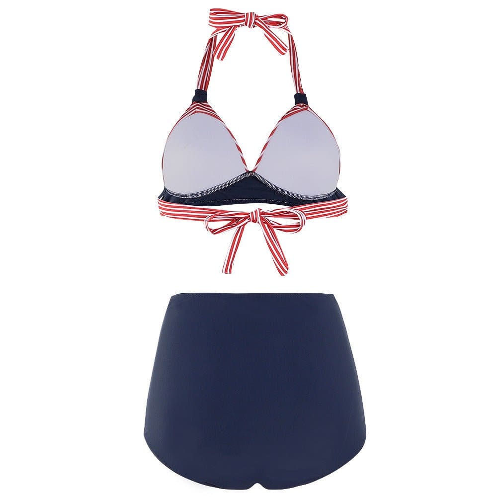 Craquez pour ce Maillot de Bain Rétro Taille Haute Rouge Marine