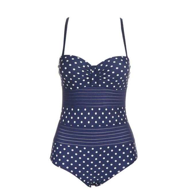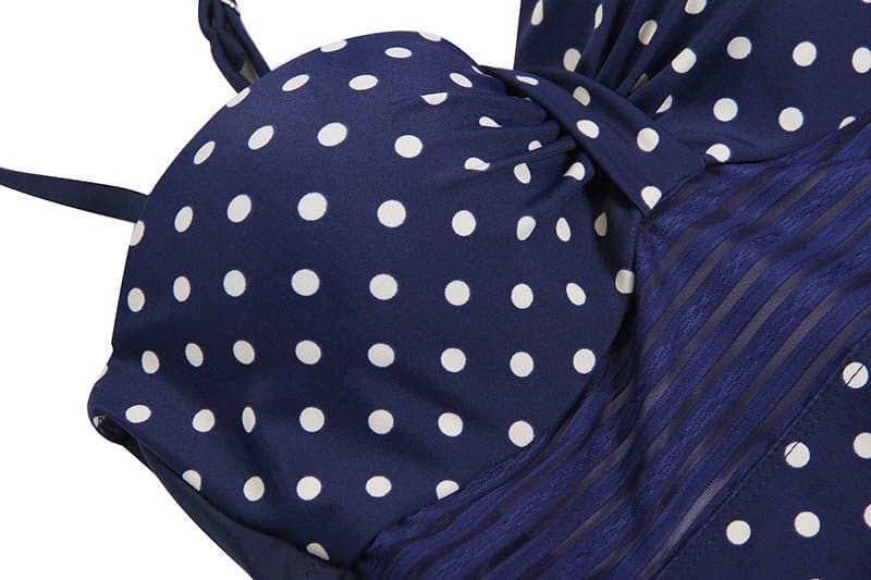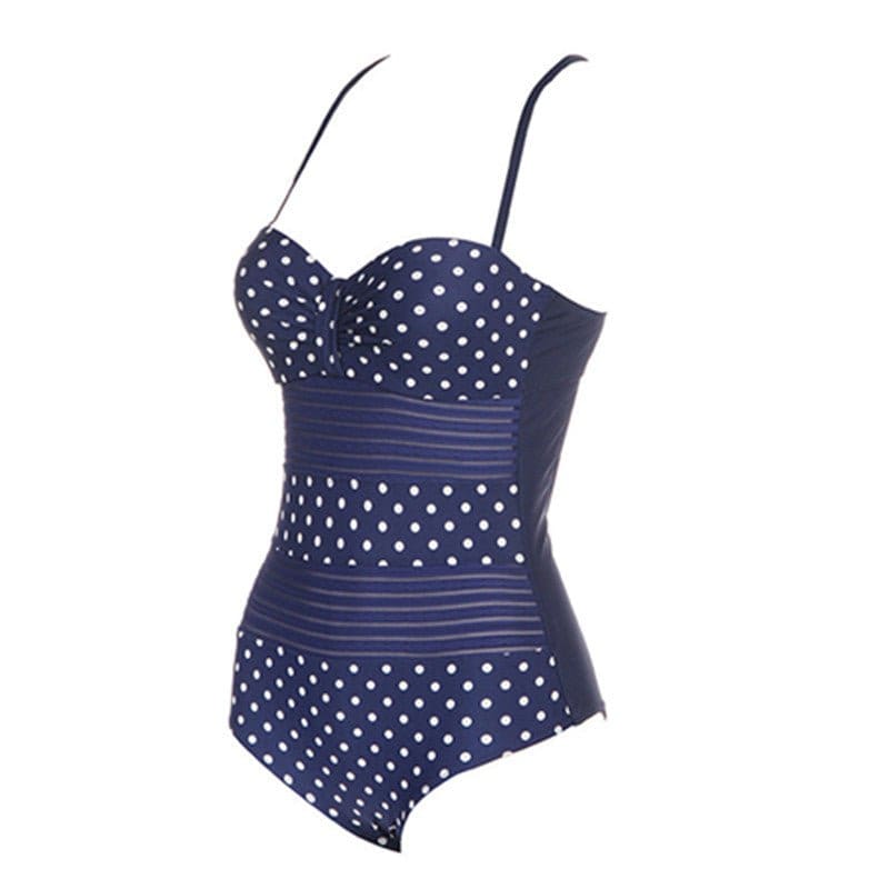 Superbe Maillot de Bain Vintage bleu pois aussi confortable que joli. On adore le look rétro de ce monokini qui sera parfait pour nager avec style à la plage.