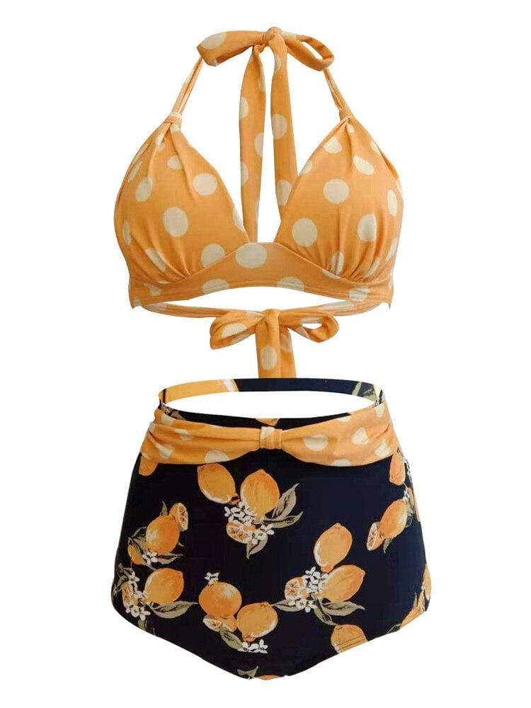 Découvrez notre magnifique Maillot de Bain Vintage Bikini taille haute jaune ensoleillé ! Un look rétro chic assuré avec son soutien-gorge push up et sa culotte élégante.