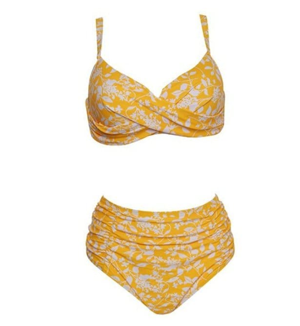 Découvrez notre magnifique Maillot de Bain Vintage Volant Fleurs Jaune. Optez pour un look rétro et original avec ce bikini taille haute idéal pour la plage. Ne ratez pas cette superbe tenue !