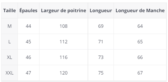 Le guide des tailles en photo indique les dimensions du vêtement. Vos mensurations doivent être inférieures aux dimensions indiquées.