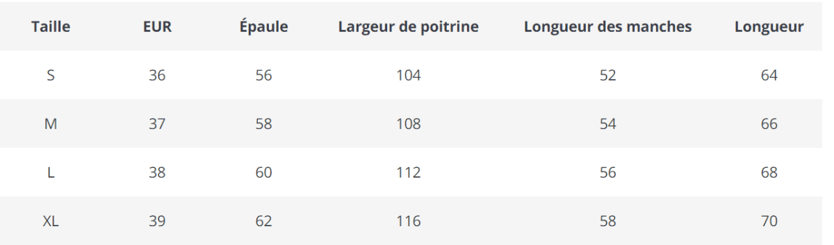 Consultez le guide des tailles sur la photo pour choisir la taille qui vous convient.