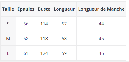 Le guide des tailles en photo indique les dimensions du pull. Veuillez vérifier que vos mensurations sont inférieures aux dimensions indiquées.