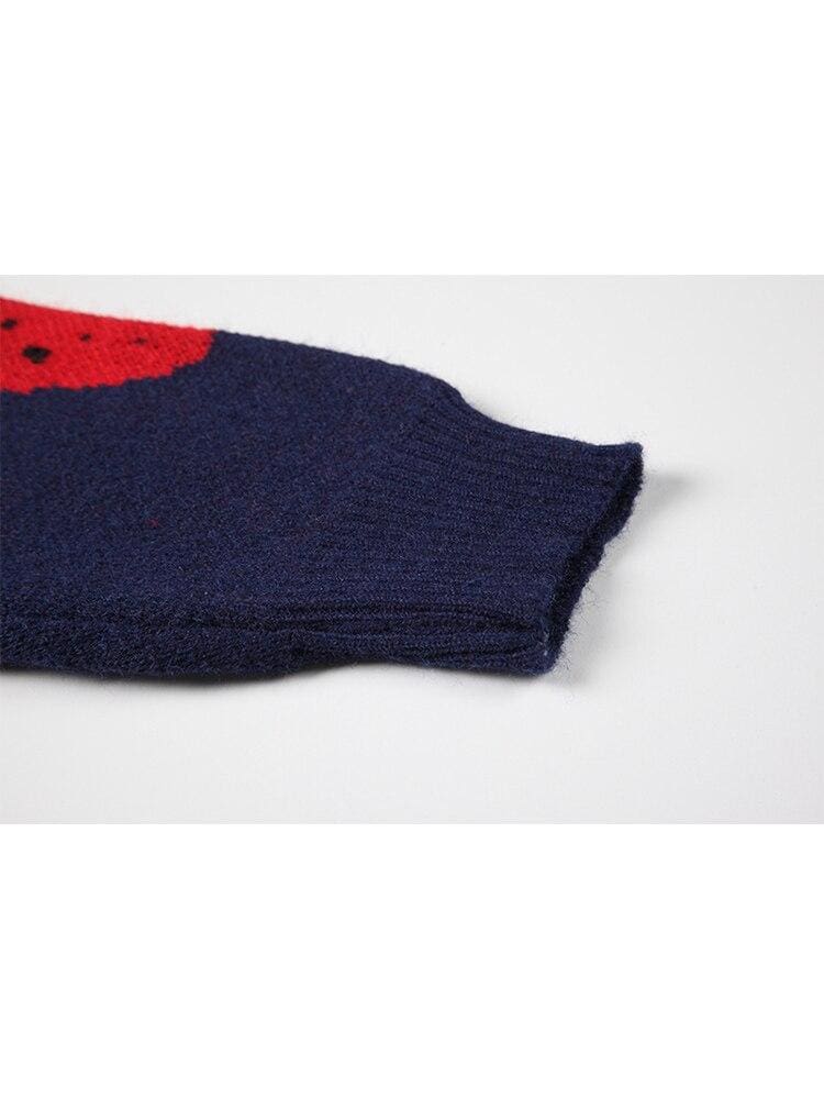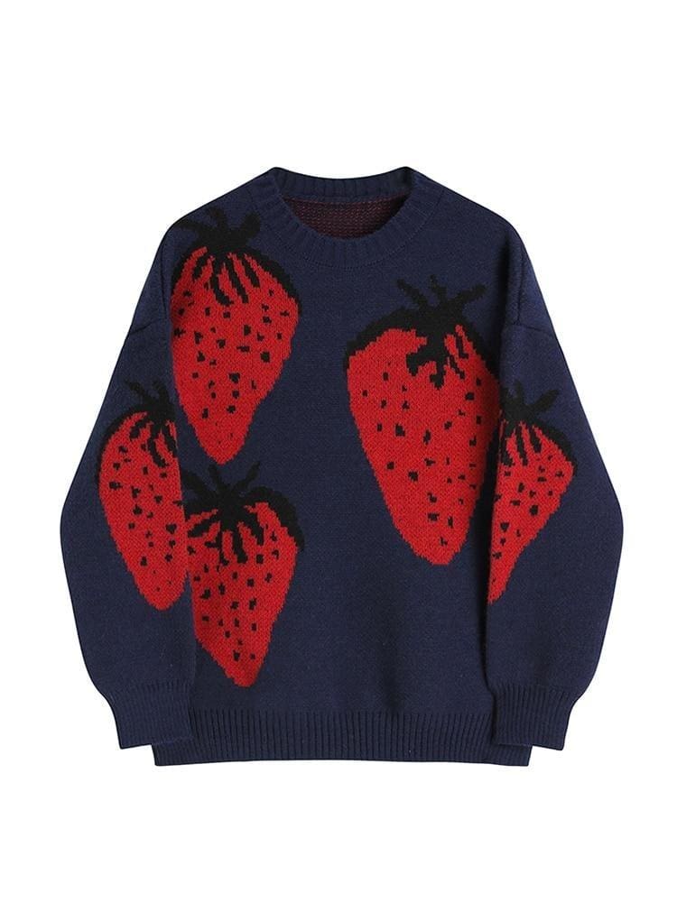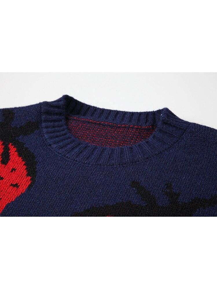 Adoptez un look original avec ce pull vintage aux motifs de fraises marines