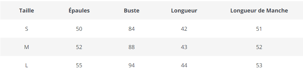Le guide des tailles en photo indique les dimensions du vêtement. Veuillez vous assurer que vos mensurations sont inférieures aux dimensions indiquées.