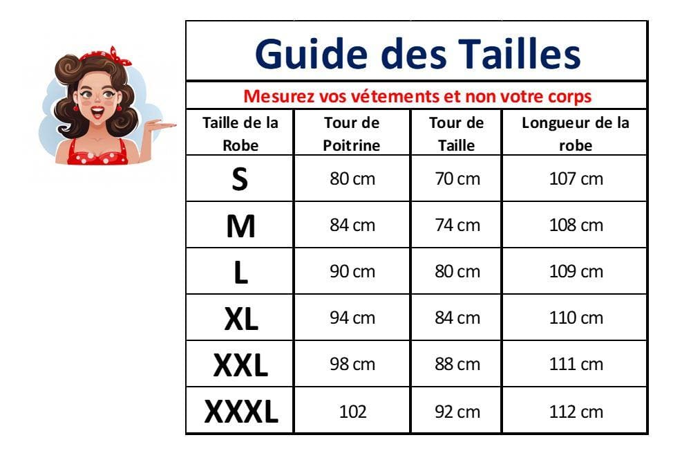 Consultez le guide des tailles en photo afin de choisir la bonne Taille