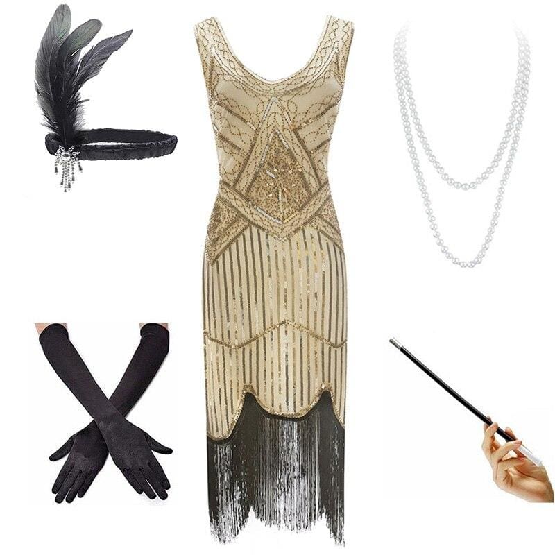 Brillez avec la Robe Année 20 Vintage Beige Noire. Vous allez vous parer de charme rétro dans cette tenue vintage de haute qualité. Les accéssoires seront appréciés pour les shooting photo.