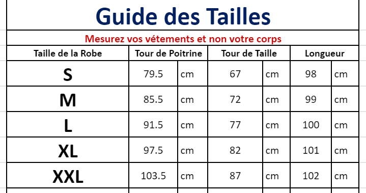 Consultez le guide des tailles en photo pour choisir la taille idéale 🙂