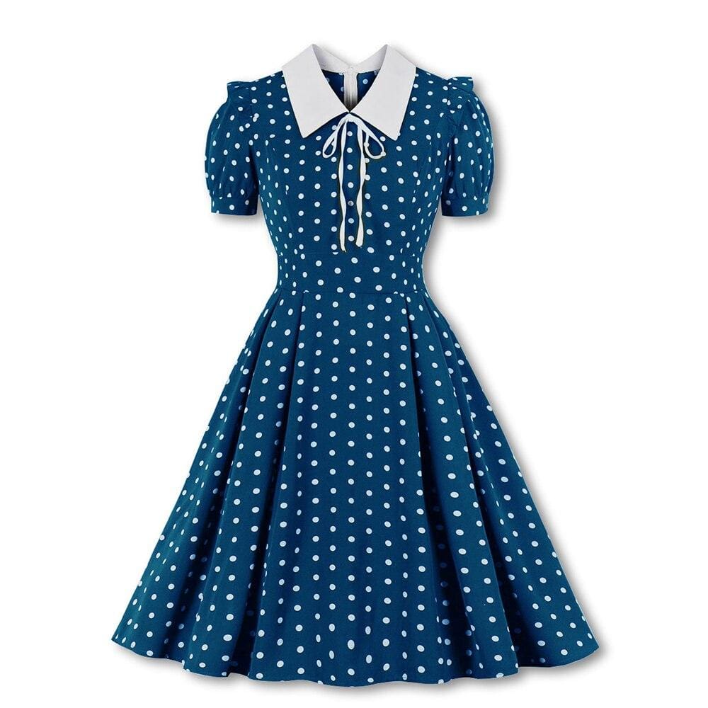 Une magnifique Robe Année 50 Paris Bleu qui apporte une touche pin-up à votre tenue. Ce vêtement présente une coupe typique de la mode des années 1950. Associez cette robe à un sac vintage et vous serez sublime pour une soirée. Vous ferez sensation ! Vous ne regretterez pas votre achat.