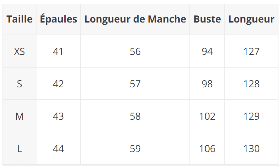 Consultez le guide des tailles en photo pour choisir la bonne taille 🙂