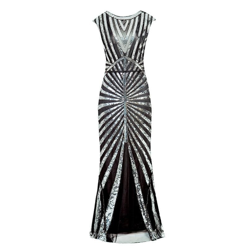 Robe Années 20 Argent longue pour soirées chic et mariages