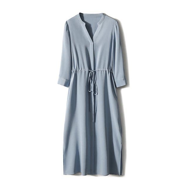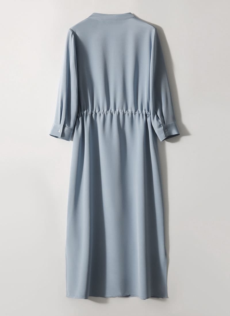 Adoptez le style disco des années 70 avec cette robe bleue. Portez-la de manière décontractée en journée ou lors de soirées disco ou rock grâce à sa jupe fendue.