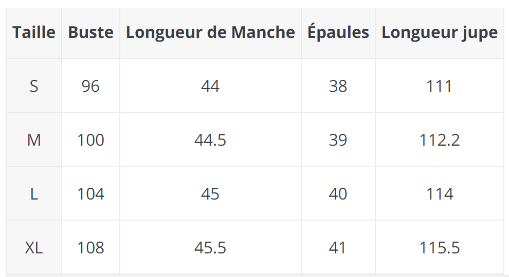 Consultez le guide des tailles en photo pour choisir la bonne taille 🙂