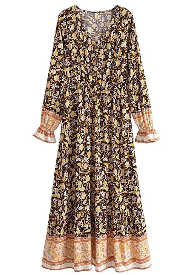 Devenez la hippie que vous souhaitez être avec cette robe années 70 pour femme. Son imprimé fleuri vous plongera dans l’esprit de l’amour et de la paix.