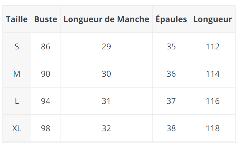 Consultez le guide des tailles en photo pour choisir la bonne taille 🙂