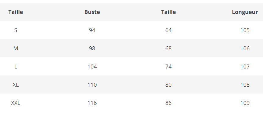 Veuillez consulter notre guide des tailles en photo pour choisir la bonne taille 🙂