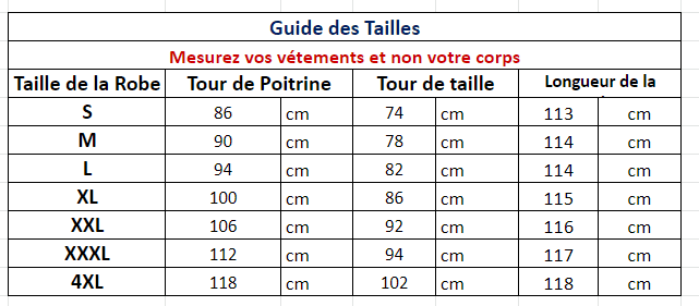 Consultez le guide des tailles en photo pour choisir la bonne Taille