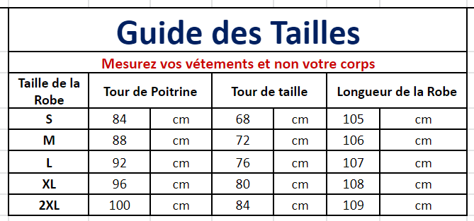 Consultez le tableau des tailles en photo pour choisir la bonne taille 🙂
