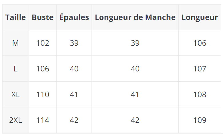 Consultez le guide des tailles en photo pour choisir la bonne taille 🙂