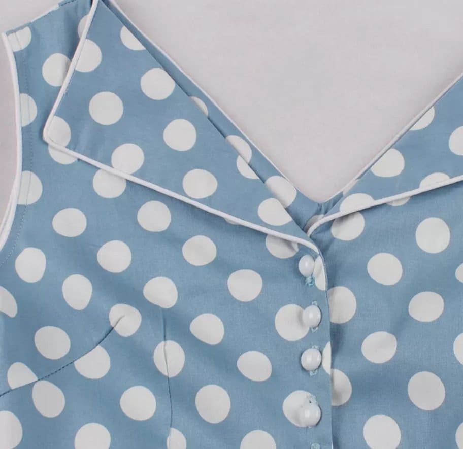 Une magnifique robe d’été style années 50 pour apporter de la fraîcheur à votre tenue. Cette pièce présente une taille haute et un look emblématique des fifties. Complétez votre look avec de jolies chaussures vintage et vous serez superbe pour toutes les occasions. Qui ressemblera à Marilyn Monroe ? C’est vous ! Achetez dès maintenant cette merveille.