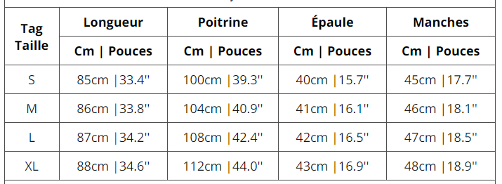 Consultez le guide des tailles en photo pour choisir la bonne taille 🙂