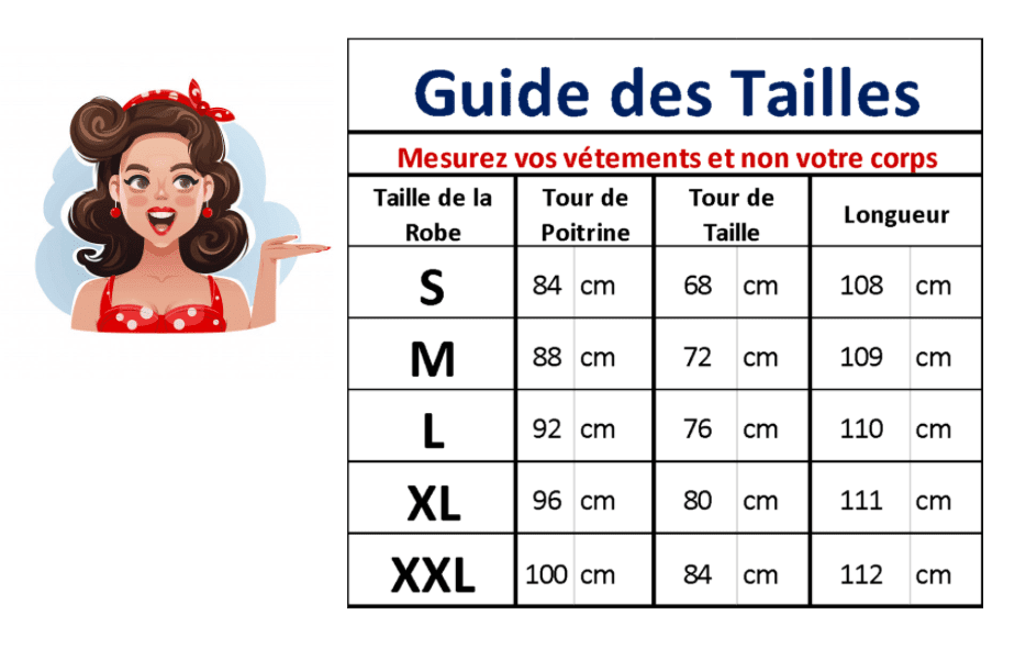 Consultez le guide des tailles en photo afin de choisir la bonne Taille