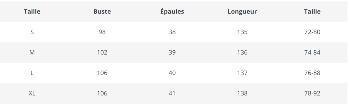 Consultez notre guide des tailles en photo pour choisir la bonne taille:-)
