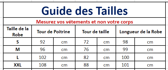 Consultez le guide des tailles en photo pour choisir la bonne taille 🙂