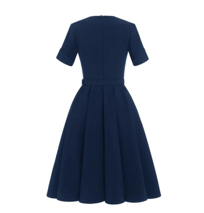 Découvrez notre charmante Robe Style 50’s Vintage Marine pour un look rétro et chic. Cette robe vous transporte dans les années 1950 avec son style vintage unique. Parfaite pour toutes les occasions, elle peut être sublimée avec un jupon en tulle pour plus de volume. Vous ne passerez pas inaperçue, même Marilyn Monroe sera jalouse de votre robe. Ne cherchez plus, cette robe est faite pour vous.