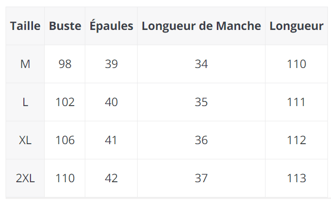Consultez le guide des tailles en photo pour choisir la bonne taille 🙂