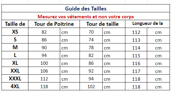 Consultez le guide des tailles en photo pour choisir la bonne taille