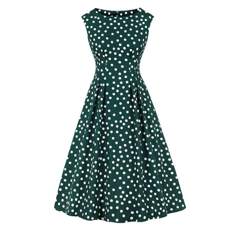 Robe Vintage Année 50 Verte Pois Blancs