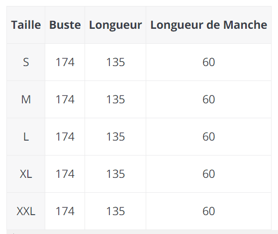 Consultez le guide des tailles en photo pour choisir la bonne taille