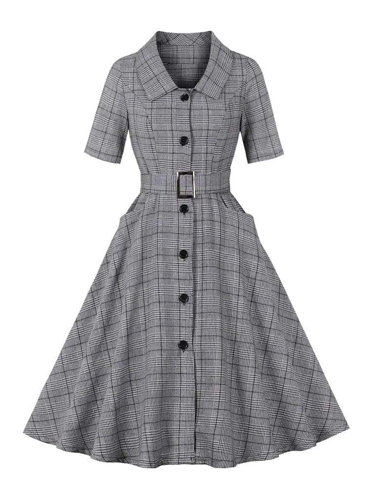 Robe Vintage Chic Carreaux Grise : ajoutez du swing à votre tenue