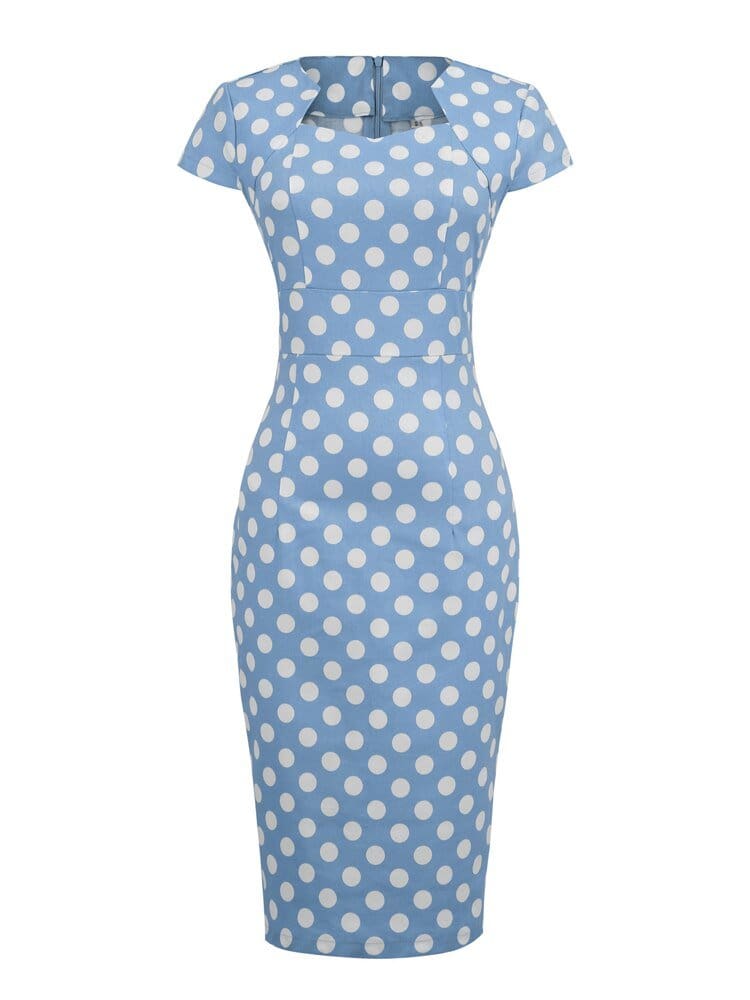 Découvrez notre magnifique Robe Vintage Col Carré à pois. Sublimez votre look avec cette robe crayon bleu à pois blancs inspirée des années 50. À ne pas manquer !
