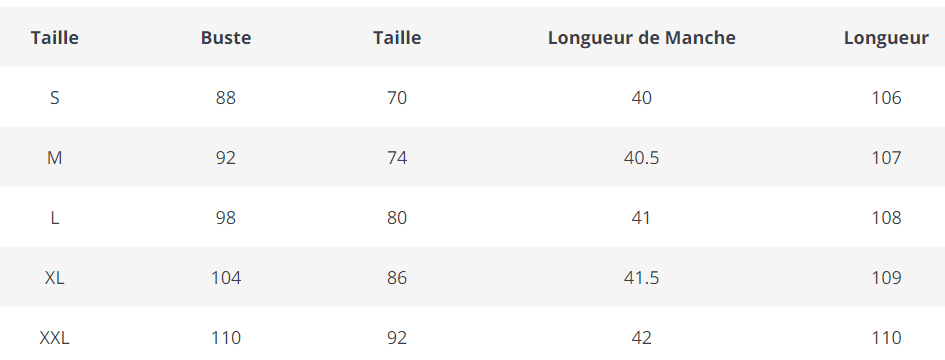 Consultez le guide des tailles en photo pour choisir la bonne taille 🙂