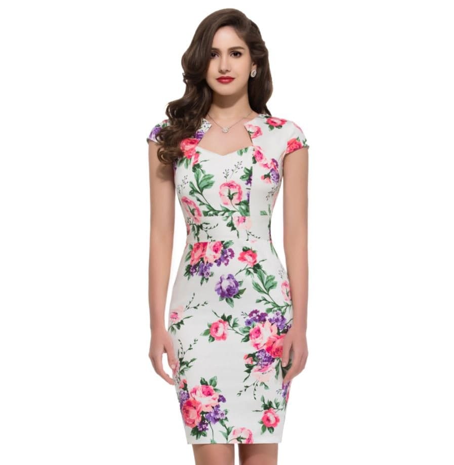 Vous allez adorer le look travaillé de cette superbe robe crayon moulante à fleurs. Ne manquez pas ce modèle! Dépêchez-vous!