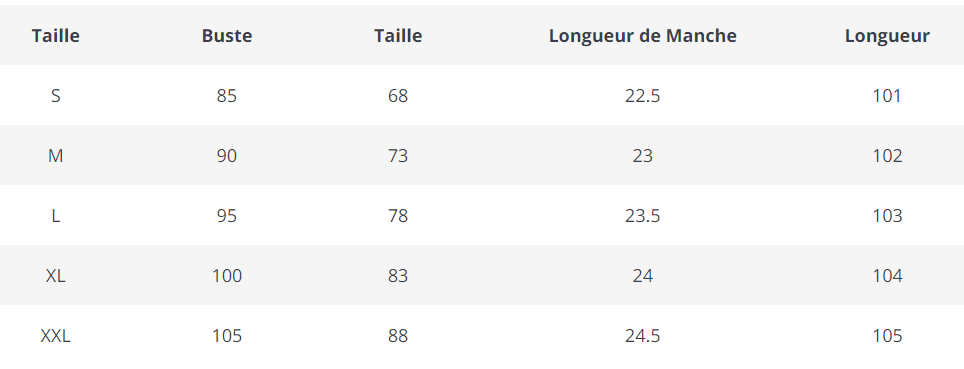 Consultez le guide des tailles en photo pour choisir la bonne taille 🙂