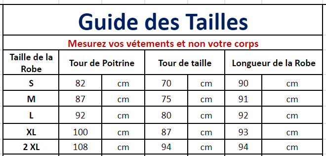Consultez le guide des tailles en photo pour choisir la bonne taille :
