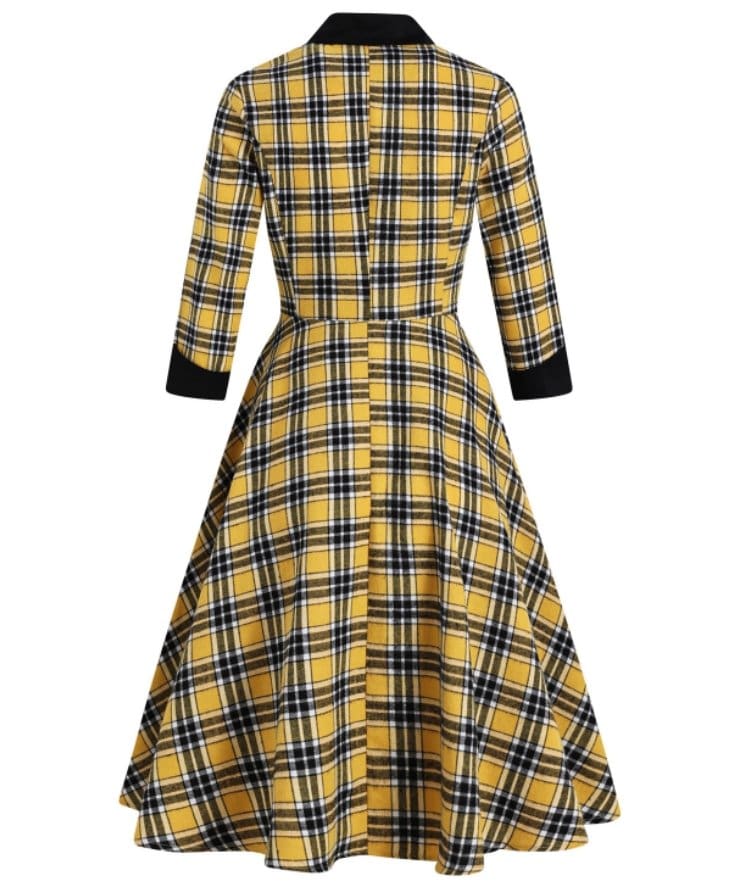 Superbe Robe Vintage Rayée Jaune et Noir au look rétro et chic. Vous serez superbe en toute occasion avec cette tenue très élégante dans années 60. Ne pas rater cette petite merveille!