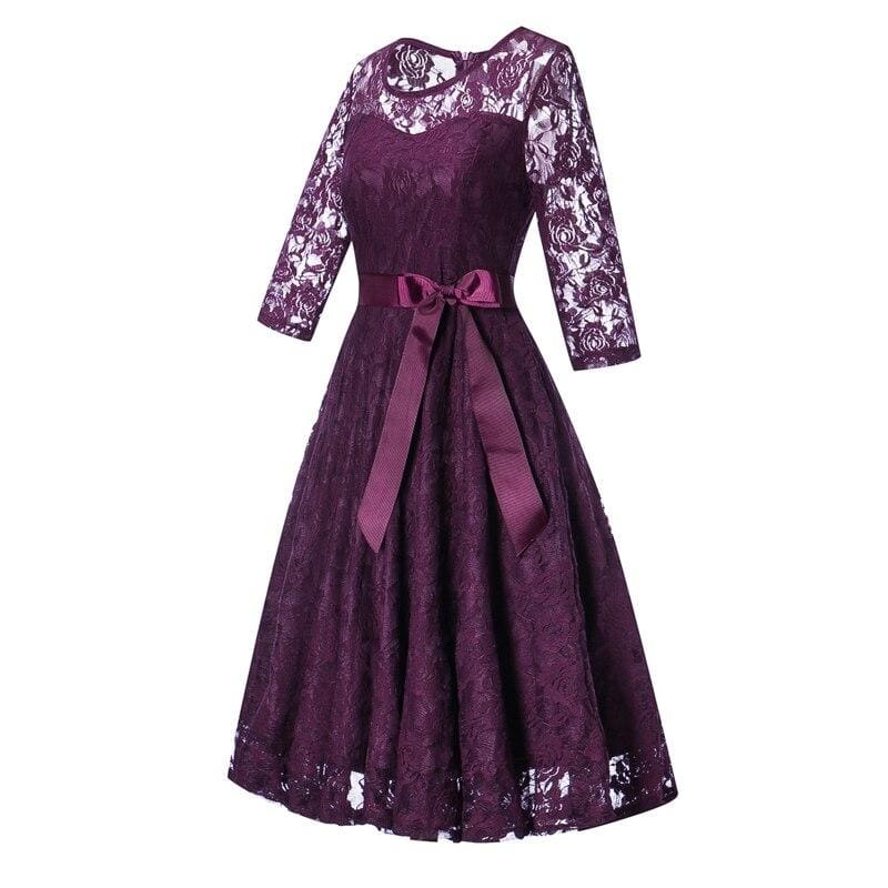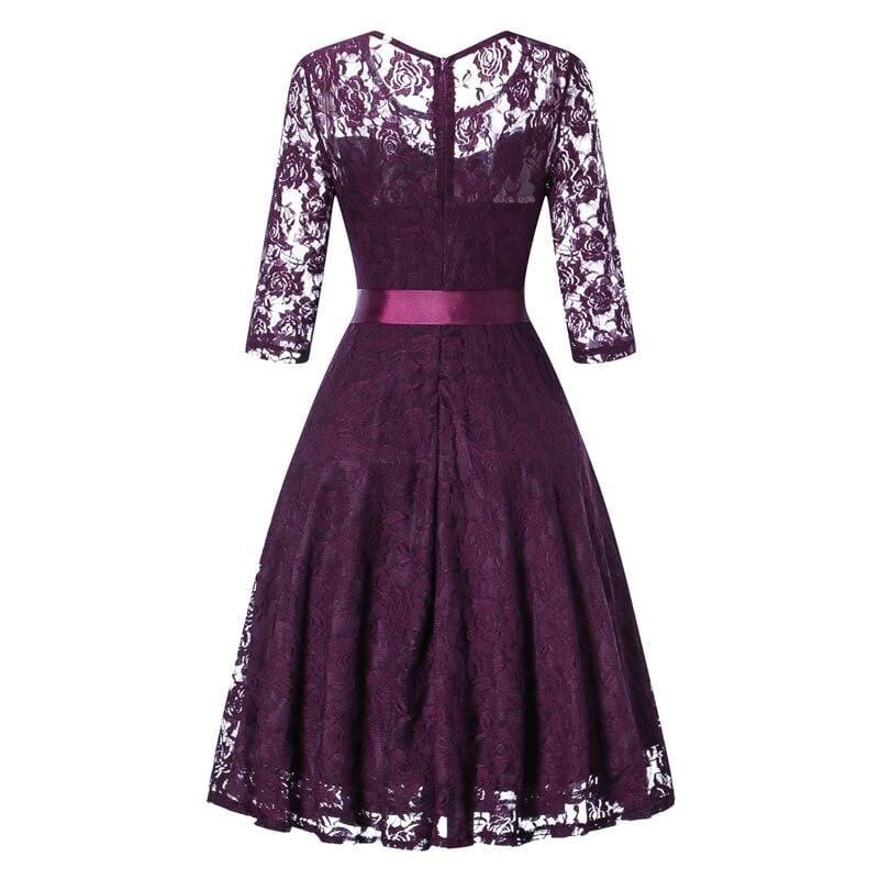 Robe Vintage soirée manches longues violet très élégante pour les soirées chic. Effet garanti avec sa coupe rétro et ses broderies de grande qualité. Vous allez adorer !