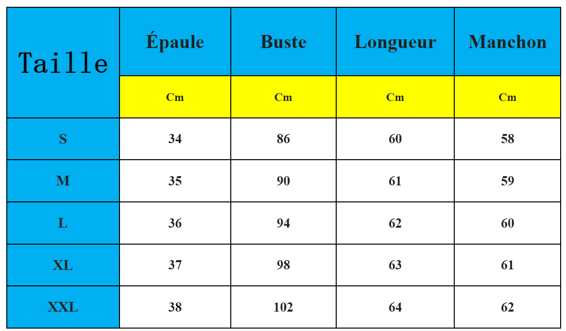 Consultez le guide des tailles en photo pour choisir la bonne taille 🙂