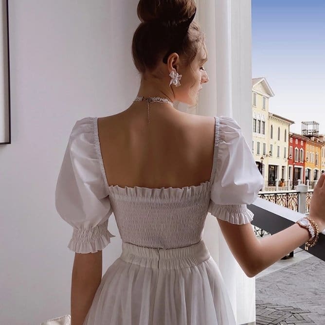 Découvrez notre sublime Top Vintage Blanc Col Carré pour un look rétro et distingué. Ce haut unique vous plaira avec son style d’antan et sa délicatesse. Associez-le à une veste pour briller en toutes occasions. Ne passez pas à côté de ce vêtement subtil !