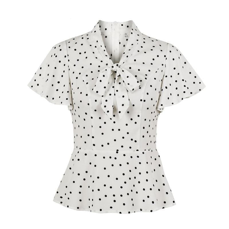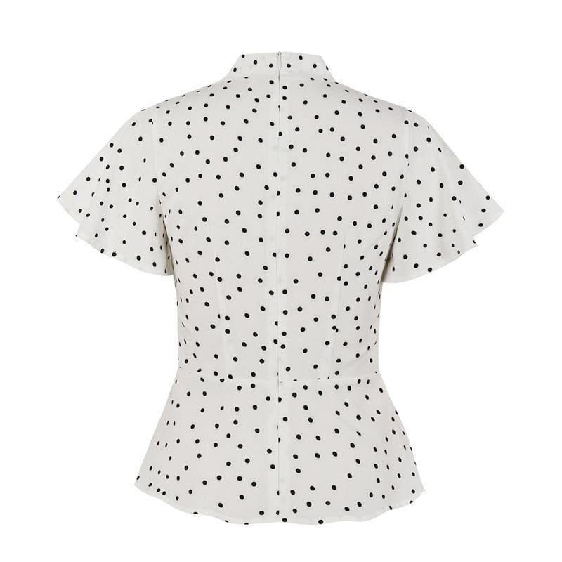 Un Top Vintage Blanc à Pois Noirs incontournable pour votre garde-robe. Osez être distinguée et originale avec ce magnifique haut parfait en toute saison. Vous allez adorer son allure rétro. Associez ce vêtement féminin avec une jupe pour être séduisante en toutes saisons. Offrez-vous ce plaisir !